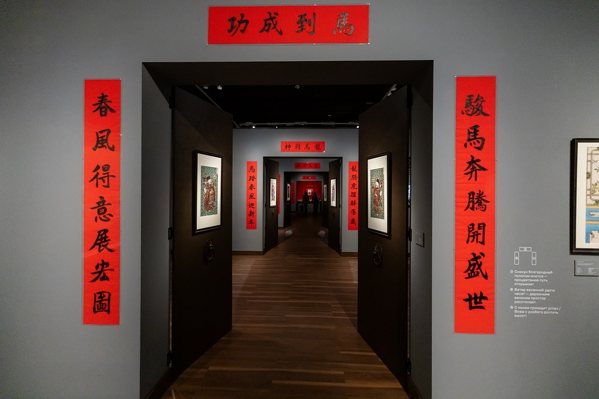 Главный герой экспозиции — китайский новогодний лубок (Няньхуа (年画, букв. «новогодняя картина») . Считается, что коллекция, представленная в Москве, — одна из лучших в мире. Это те самые яркие, наивные и при этом филигранные изображения богов, героев и пожеланий счастья, которыми украшали дома на праздник.