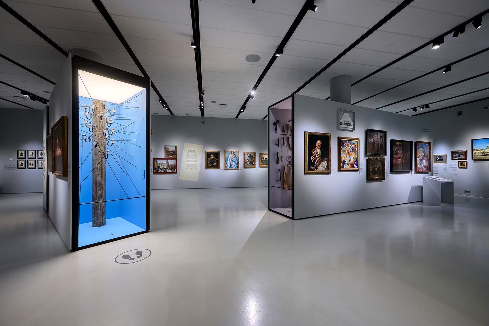 Спускайся на минус первый этаж — здесь картины русских художников конца XIX — начала XX века оживают рядом со страницами из «Москвы и москвичей». Передвижники, кубисты, модернисты — и повседневная жизнь города: рынки, кабаки, чайные, студенческие праздники, уличные типажи. Можно буквально заглянуть в окно Василия Кандинского в Хамовниках или попасть на коронацию Николая II.
